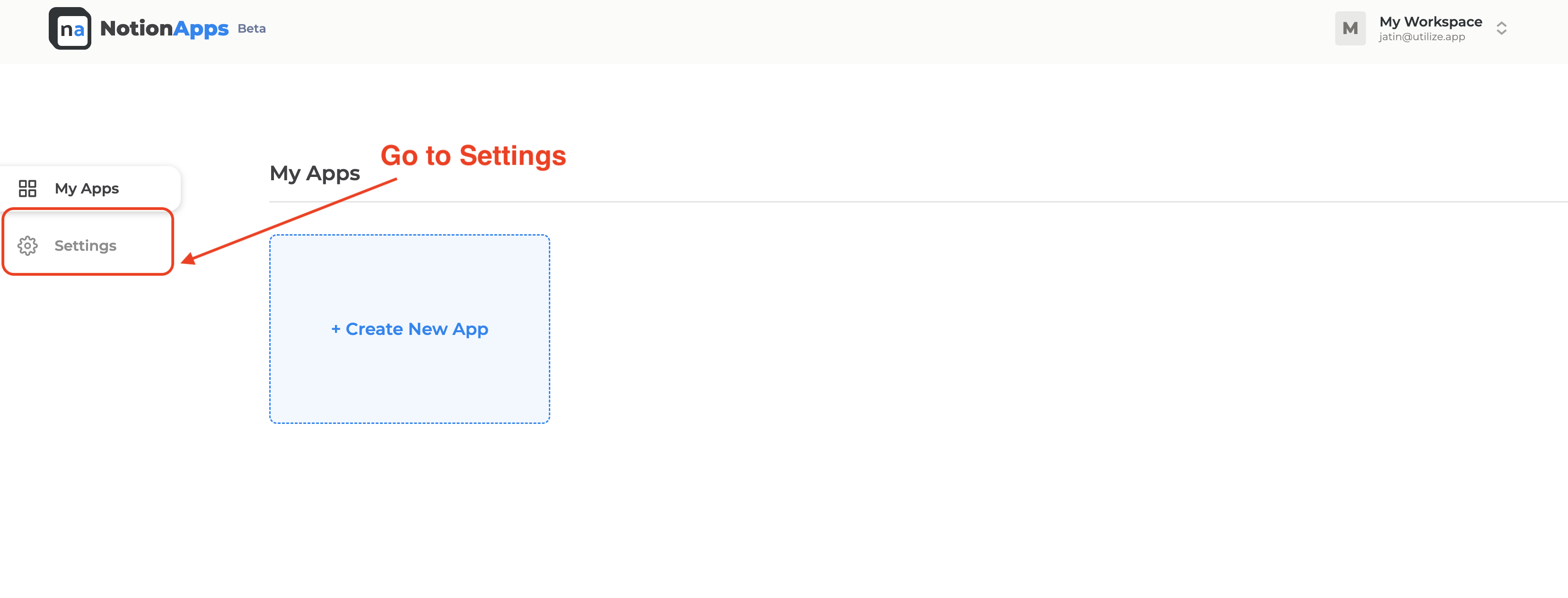 3. To add workspaces or edit pages that NotionApps has permission for within workspaces, click on "Manage Workspaces".