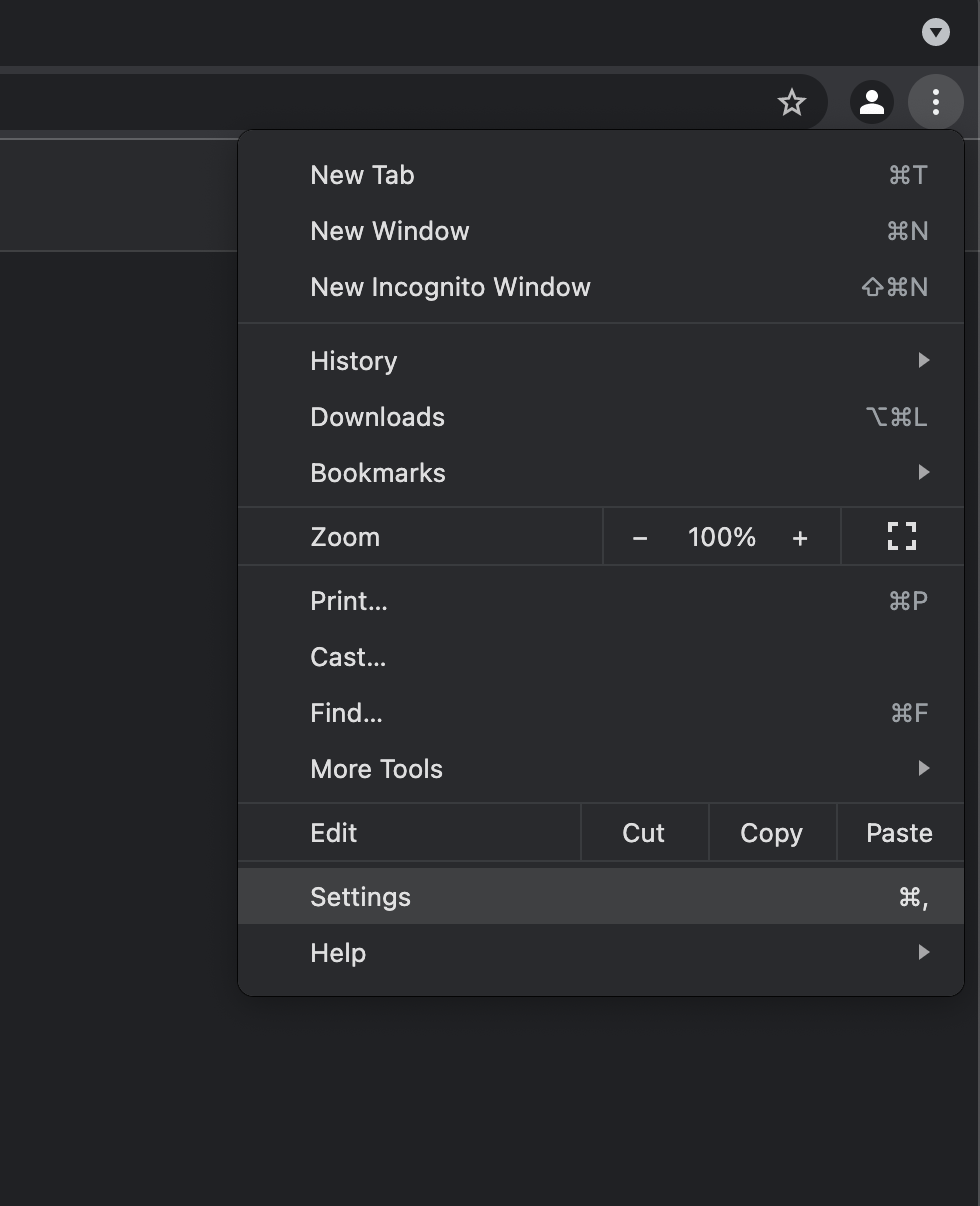 1. In the Google Chrome browser, at the top right, click *More* (3 dotted) and then Settings.